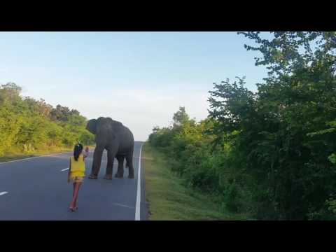 මහ පාරට ආව වල් අලියෙක් ලඟට ගිහින් මෙල්ල කරන අපේ පුංචි කෙල්ල....!!