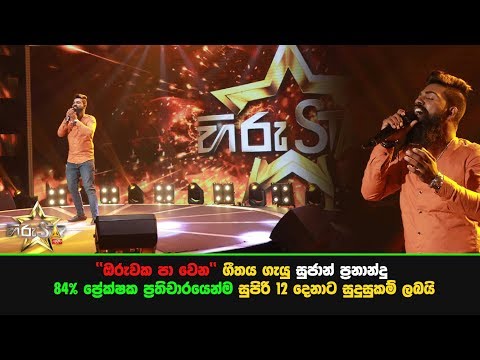 ඔරුවක පා වෙන ගීතය ගැයු සුජාන් ප්‍රනාන්දු 84% ප්‍රේක්ෂක ප්‍රතිචාරයෙන්ම සුපිරි 12 දෙනාට සුදසුකම